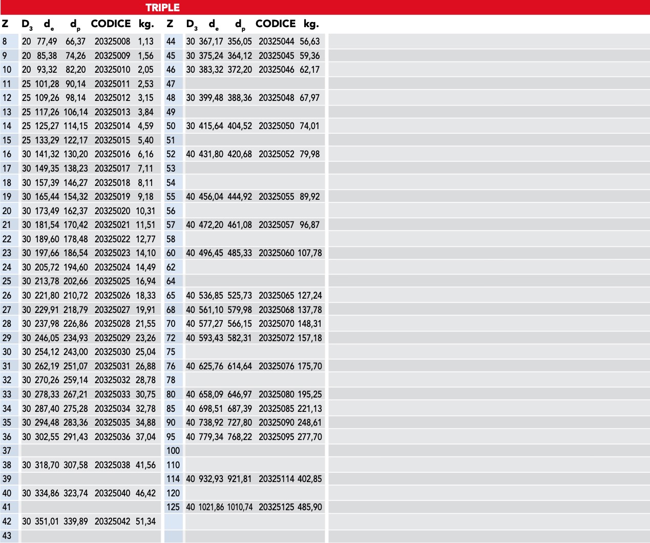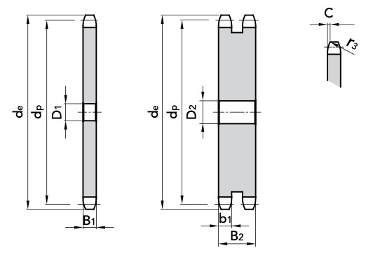 per catene a rulli secondo DIN 8187 – ISO/R 606