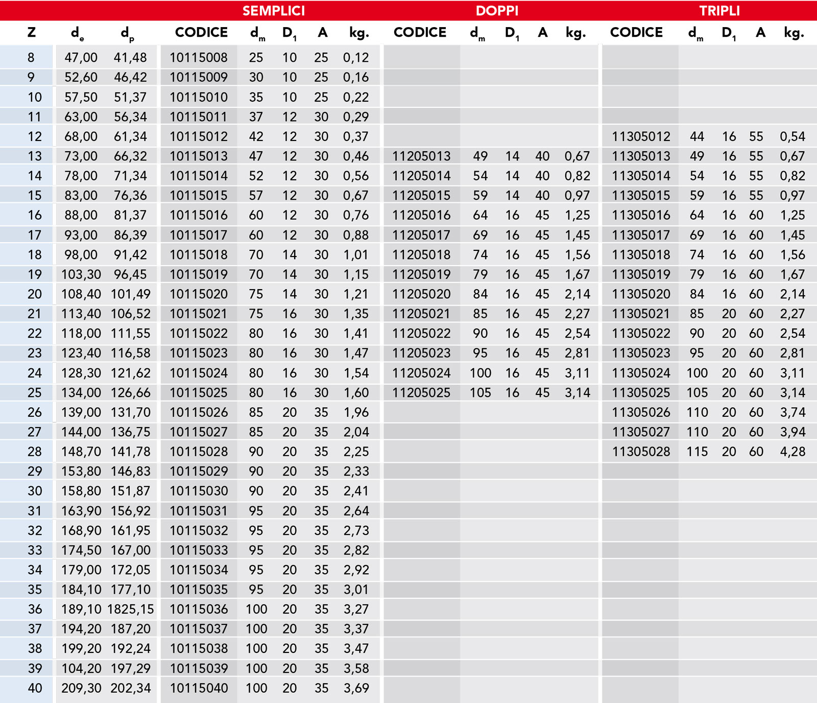 passo 5/8” x 3/8” per catene a rulli secondo DIN 8188 – ISO/R 606 – ANSI B 29.1
