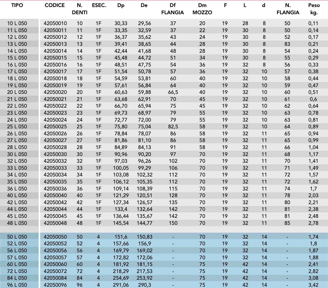 PULEGGE DENTATE CON FORO INIZIALE L 050