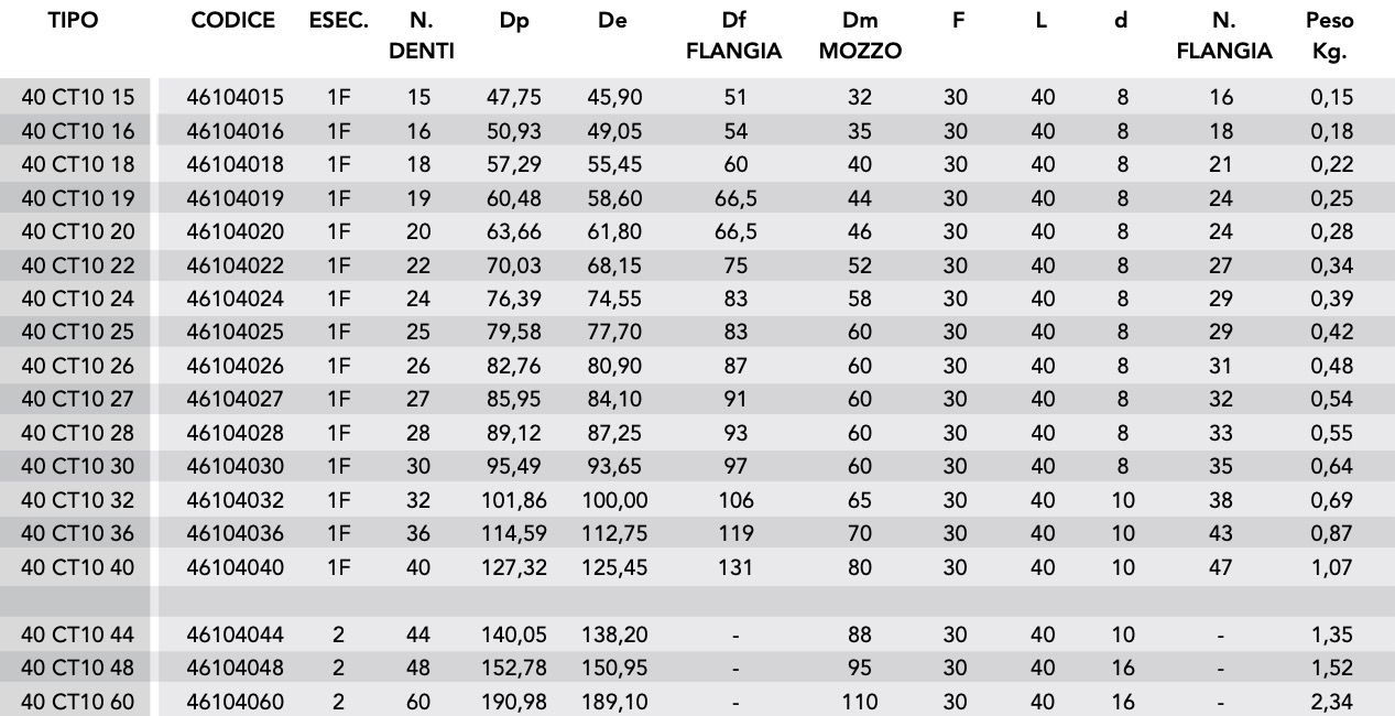 PULEGGE DENTATE CT 10 cinghia 25mm
